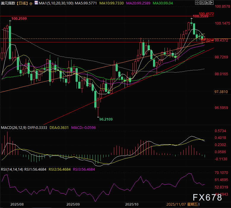 此前美联储已在2025年9月、10月两次各降息25个基点,宽松趋势明确。衡量美元兑六大主要货币的美元指数(DXY)已跌至两周低点,连续多个交易日承压下行。