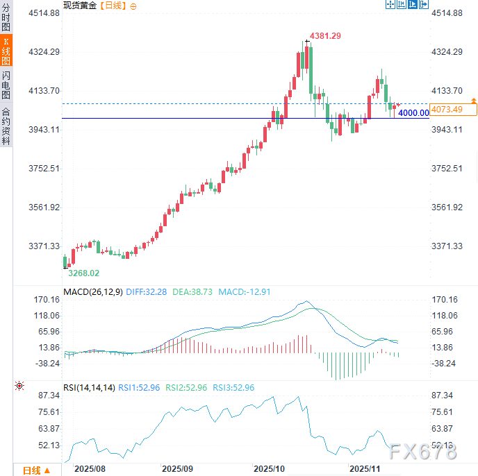 汇通财经APP讯——周三(11月19日)现货黄金小幅走高,上涨约0.25%至每盎司4077美元附近,延续前一交易日涨势。尽管政府停摆导致数据延迟限制了信息流动,近期经济数据已转向对黄金有利,为金价提供了一定支撑。