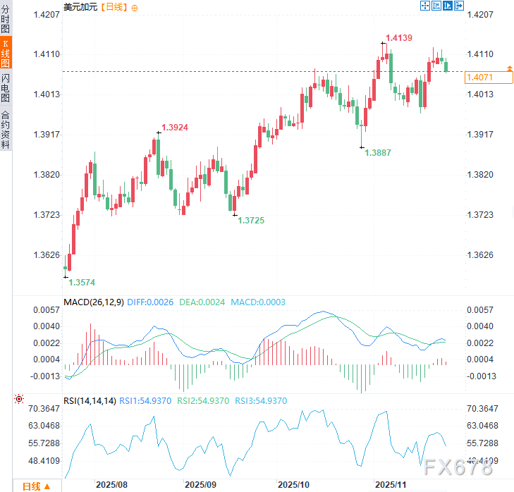 北京时间14:51,美元兑加元交投于1.4069/70。