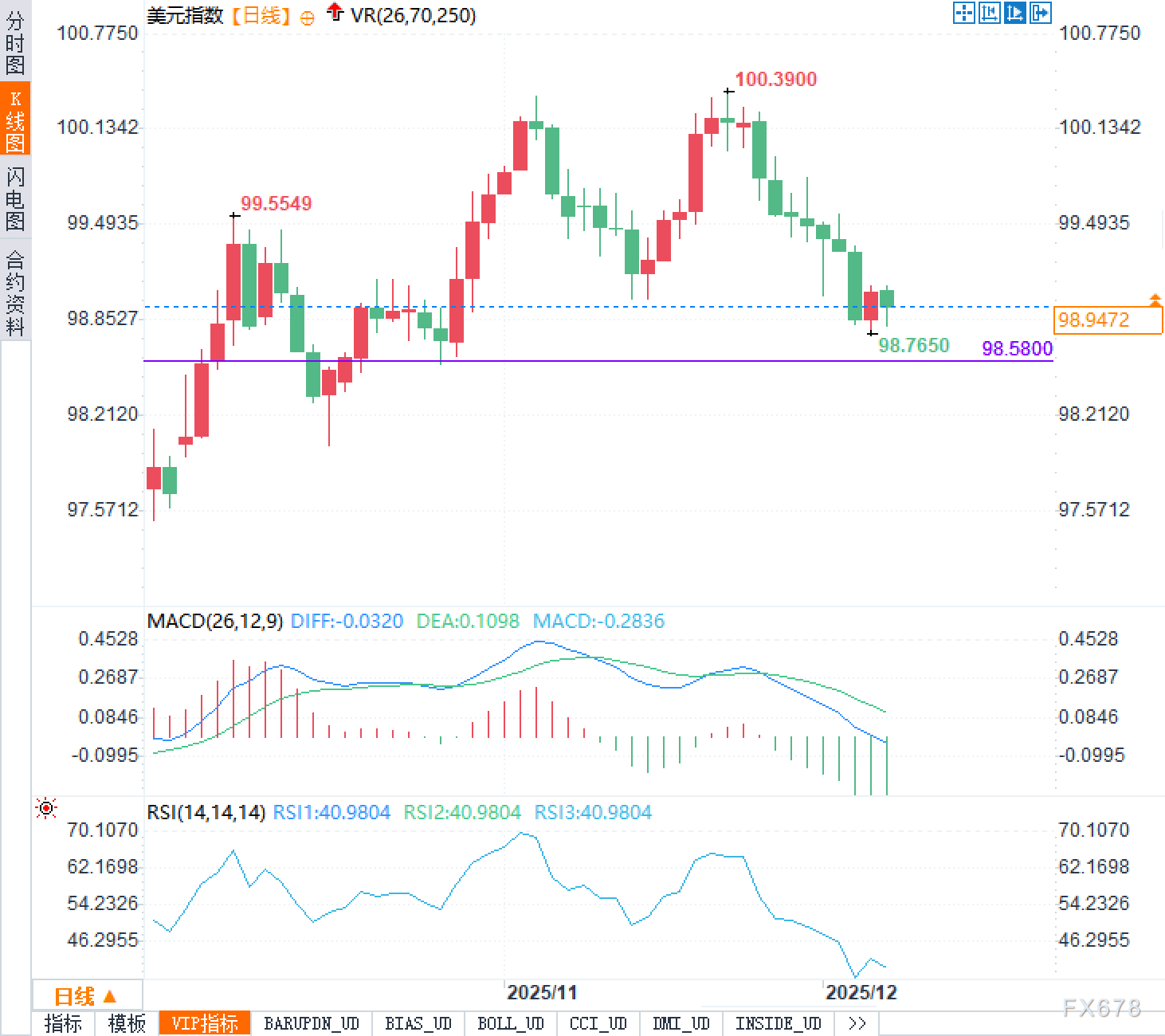 回到今日的99附近这一位置,美元指数既反映了市场对年内政策收尾方式的预期,也体现了对明年政策边界的试探。未来一段时间,外汇市场可能继续在“利率预期再定价”与“风险情绪波动”之间寻找新的平衡点。