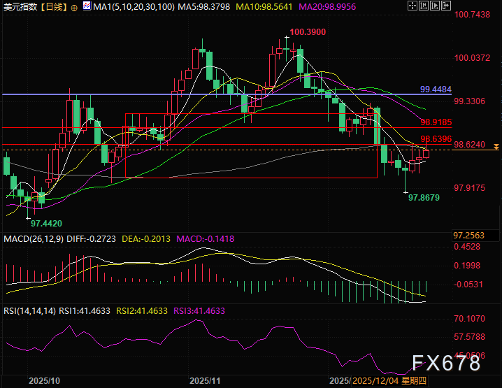 汇通财经APP讯——周五(12月19日)欧美时段,美元指数大幅反弹,多头发起了反攻,周四经历了CPI超预期滑落,但美元指数利空不跌,成为了多头交易员的买入信号,次日美元指数展开反弹,目前交投于98.72附近涨0.28%。同时日本央行早上的实际利率为负以及不够鹰派的发言帮助美元指数添了一把柴。