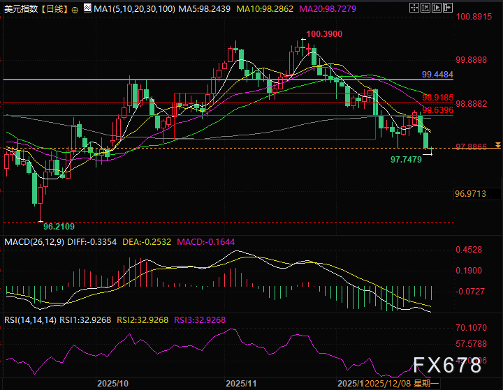 通胀的顽固高企直接压低了市场对美联储1月降息的预期,也压低了2026年全降息的预期,而利率预期差正是驱动美元波动的核心逻辑,若通胀持续超预期,美联储可能维持现有利率水平甚至重启加息周期,美元的利差优势将得到强化,吸引跨境资本流入并支撑指数走强。